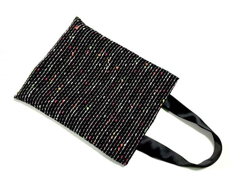 上記のサンプルからからご希望の布地(ツイードまたはマイロから一種類)、持ち手のリボンの色、